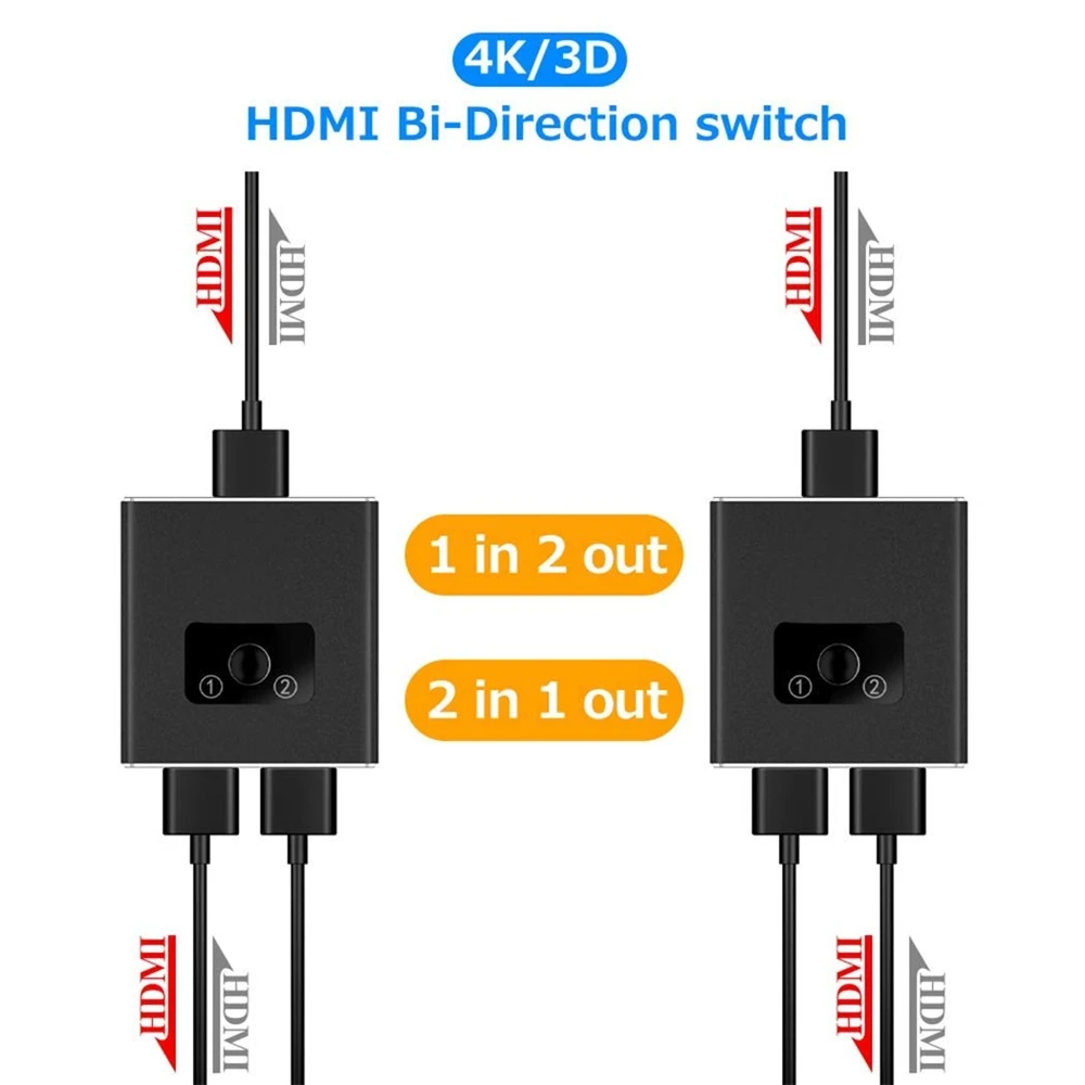 discounted 2020 1x2 HDMI Bi-Directional Switcher Support HDMI 2.0 HDCP 2.2 UHD 4K 2x1 HDMI Switch HUB Box For