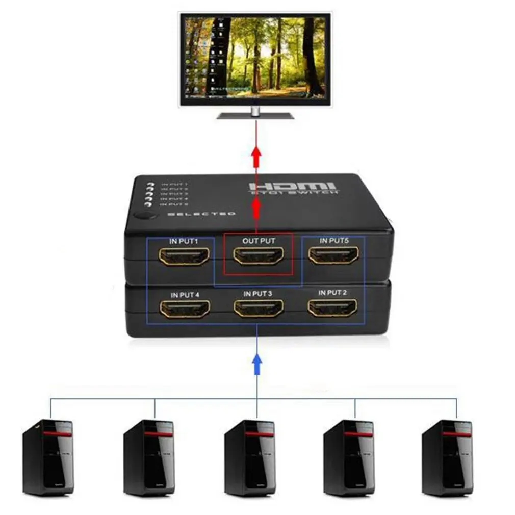 discounted Portable 5 In 1 1.4 Version 1080P HDMI Switch Switcher HD Video Support HDMI Splitter With Remote C