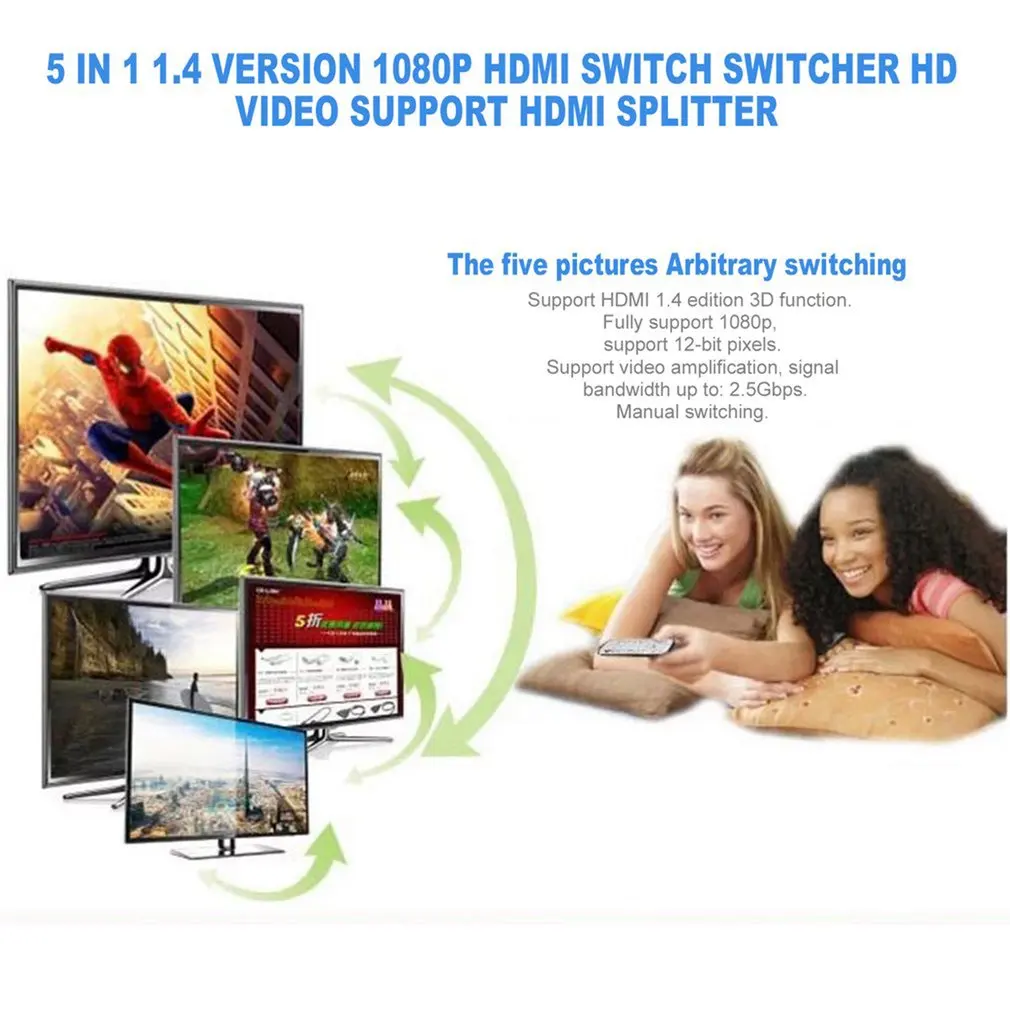 discount Portable 5 In 1 1.4 Version 1080P HDMI Switch Switcher HD Video Support HDMI Splitter With Remote C