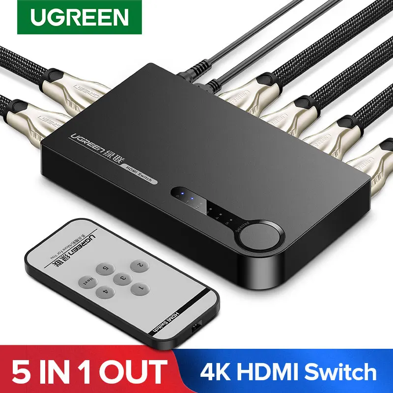 lower price Ugreen 5 In 1 Out HDMI Switch 4K 3D Adapter HDMI Splitter for PS4 Xbox one 3/5 ports 3 In 1 out wit