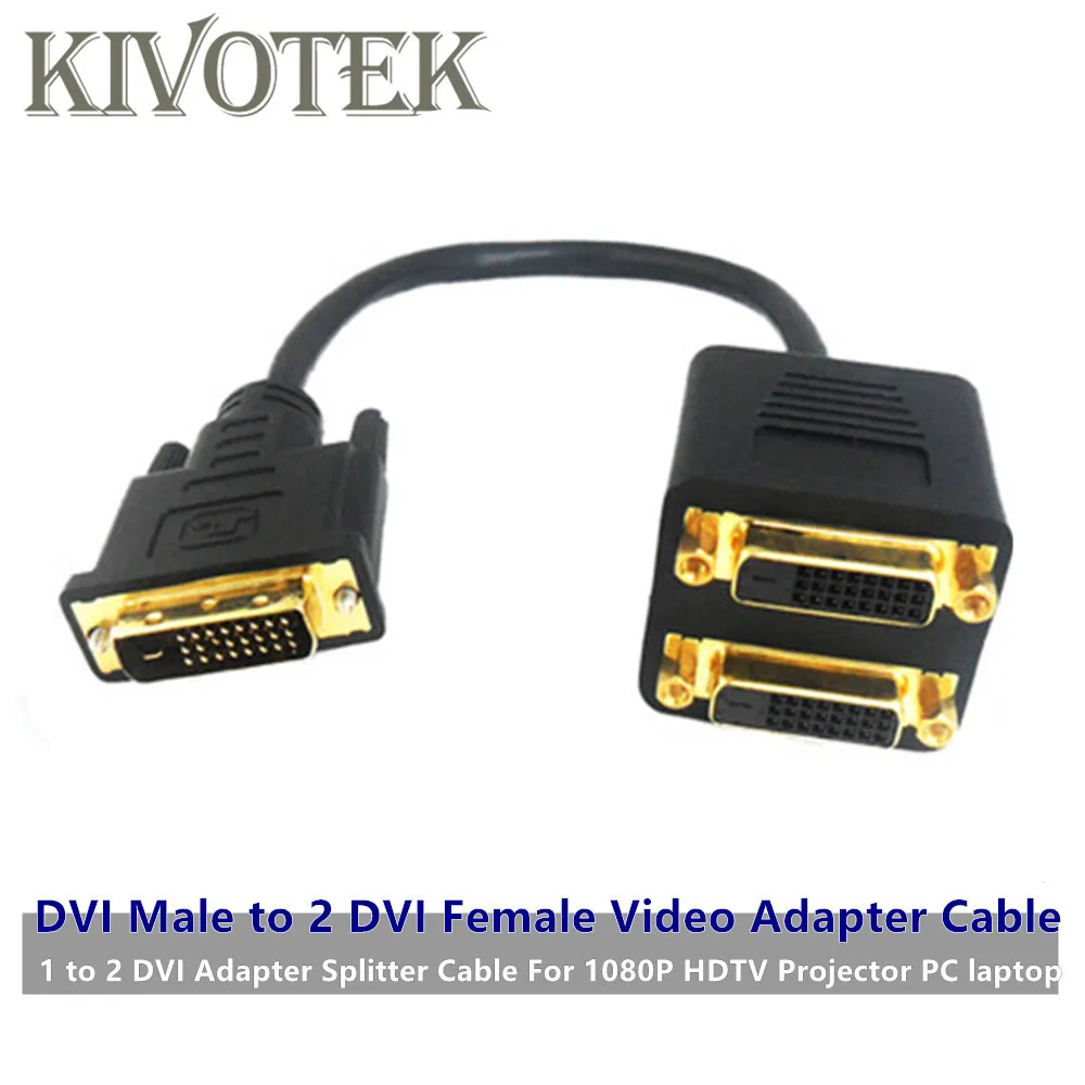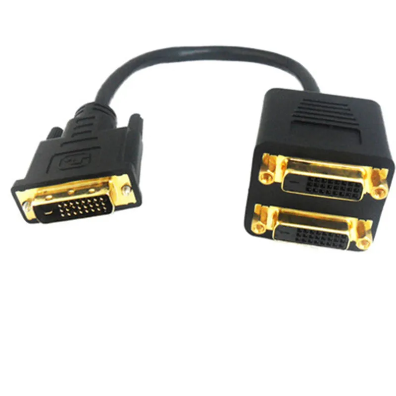lower price 1x2 DVI Splitter Adapter Cable 1-DVI Male to 2-DVI Female 24K Gold Connector For HD1080P HDTV Proje