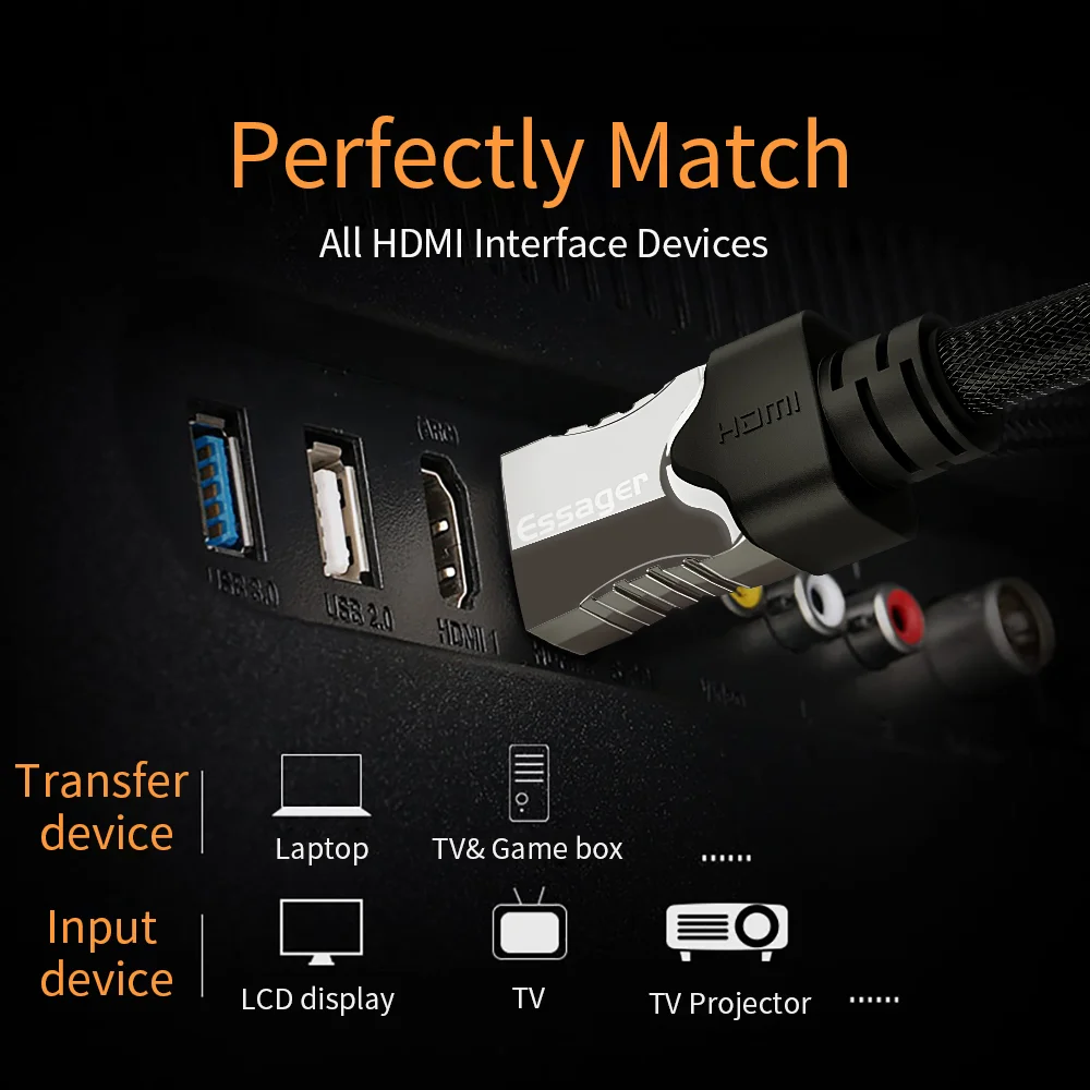 Most effective Essager HDMI Cable HDMI to HDMI 2.0 Cable 4K 1080P 3D HDMI Adapter For Projector PS4 HD TV Laptop C