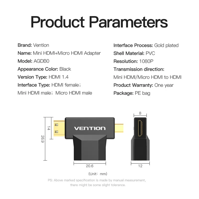 wonderful Vention Mini HDMI / Micro HDMI to HDMI Adapter Converter 2 in 1 3D 1080P Male to Female for TV Moni